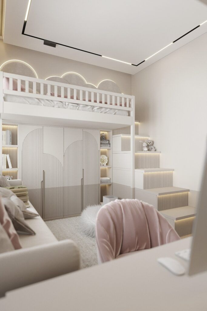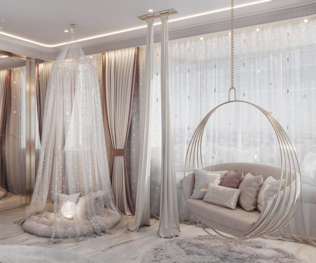 Детская для девочки – многофункциональное пространство, совмещающее функции игровой, спальни и комнаты для учебы и хобби. Грамотное зонирование помогает максимально приспособить комнату девочки под каждое из этих занятий и облегчить переход от одного вида деятельности к другому.