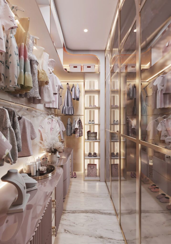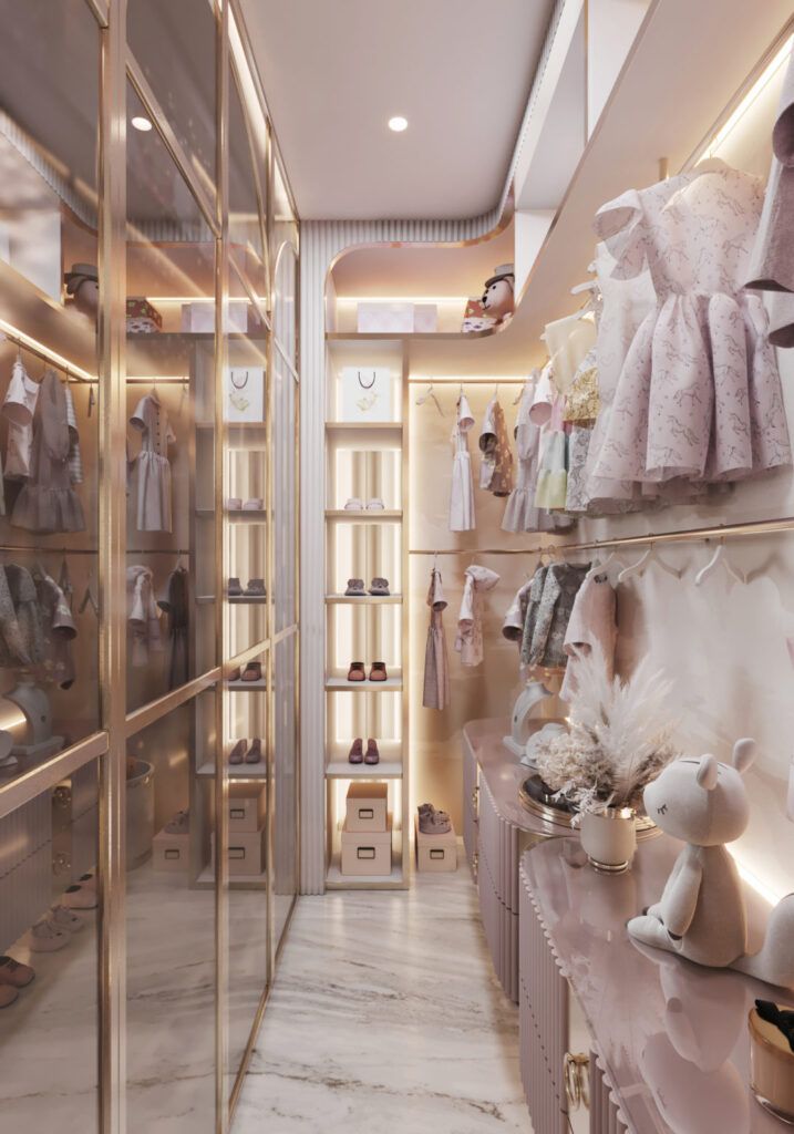Если позволяет площадь, можно отгородить отдельную гардеробную для юной принцессы.