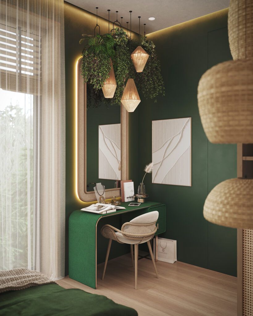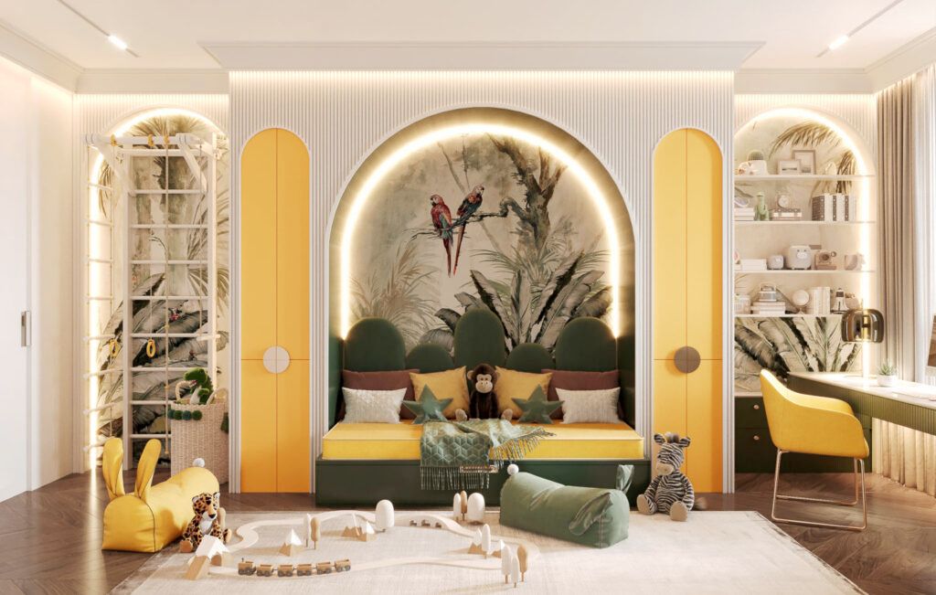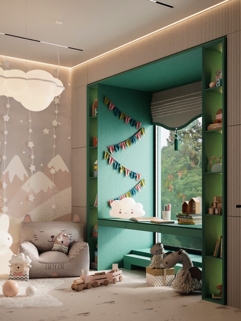 Зеленый. Еще один теплый и позитивный оттенок, который нередко используют для оформления детской для девочки. На основе зеленого цвета легко можно создать тематическую детскую, например, в стиле сказочного леса, джунглей или зоопарка.