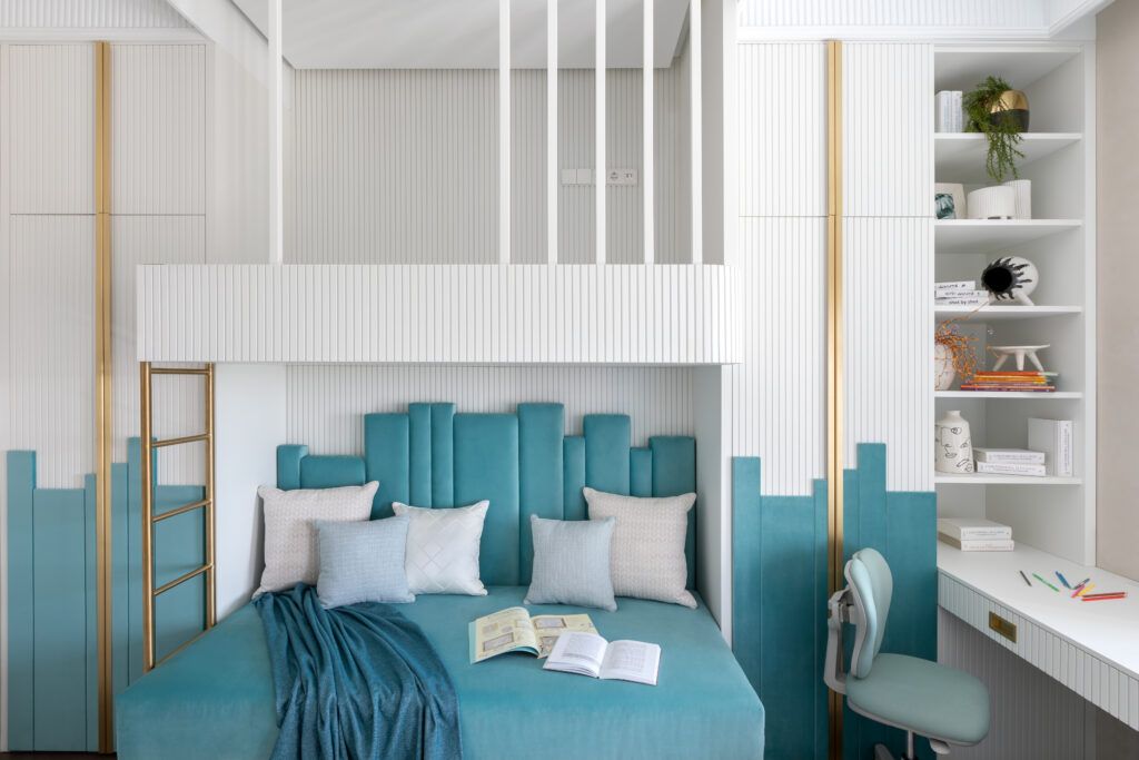 В комнате девочки старше 7 лет важно предусмотреть достаточно места для книг.