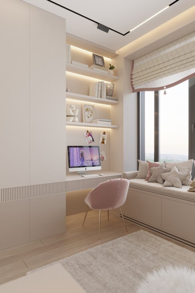 Рабочее место в комнате для девочки