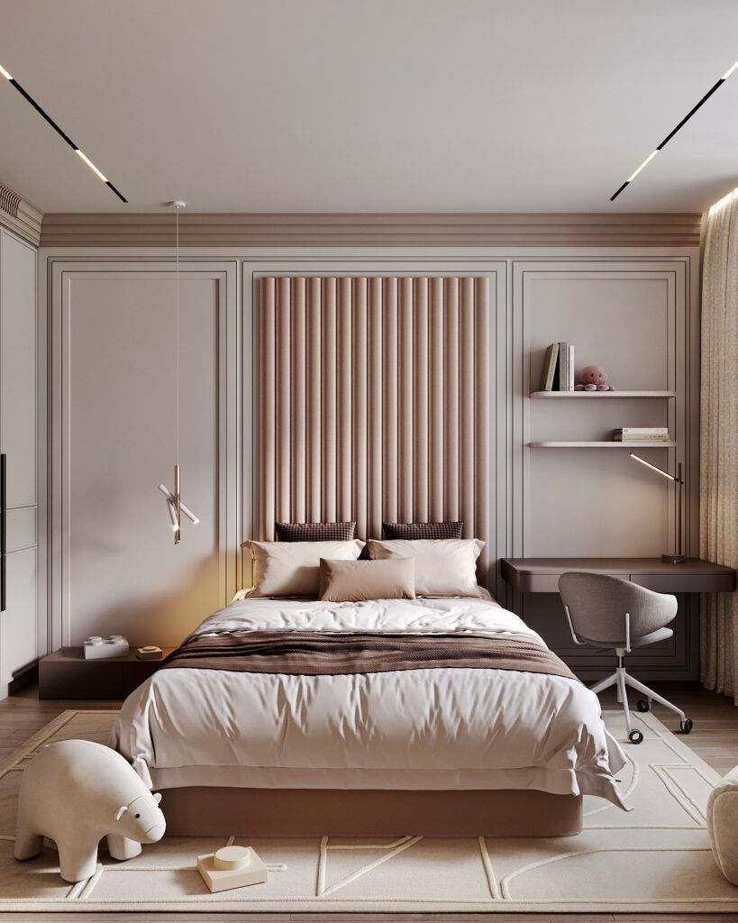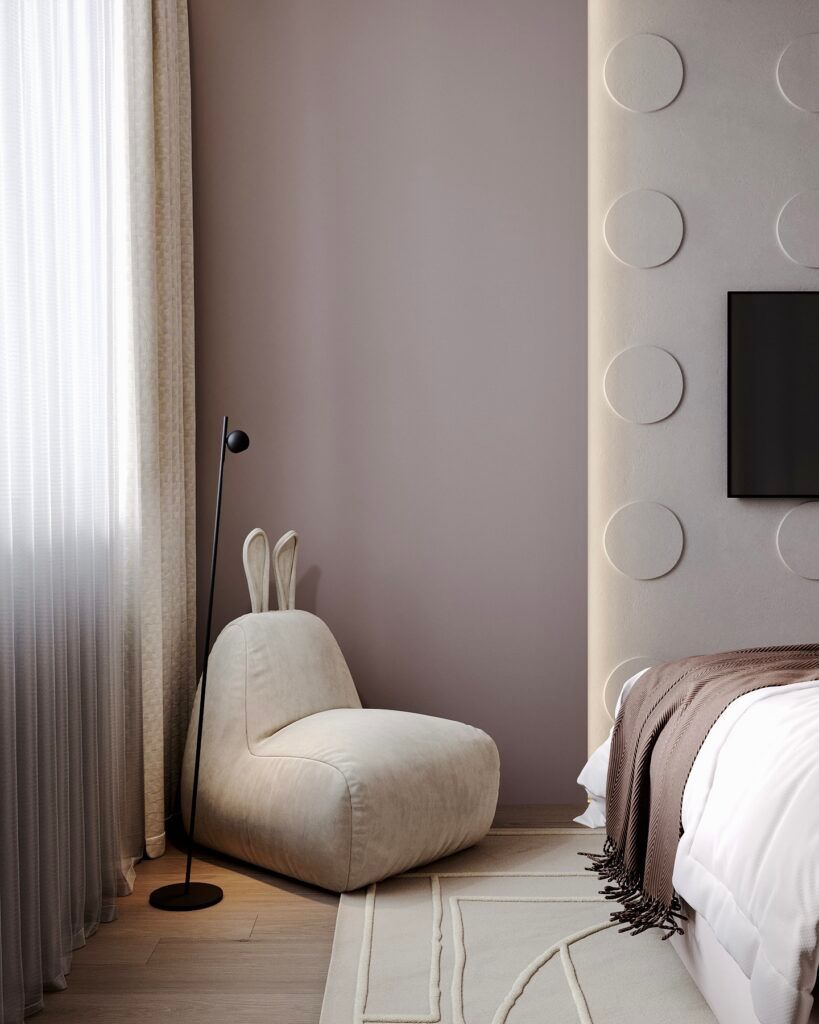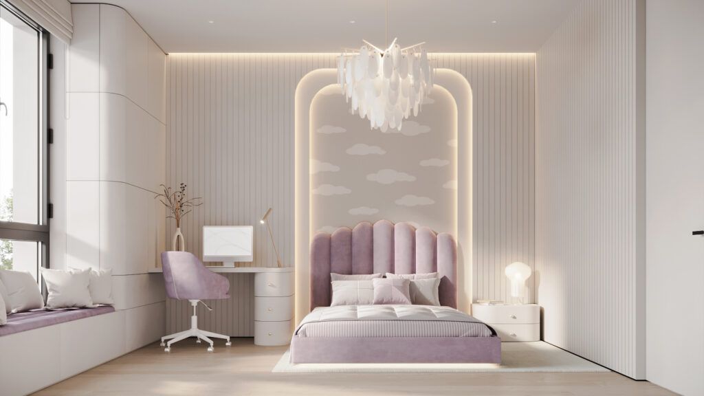 Мягкий минимализм. Мягкий минимализм – один из основных трендов в дизайне интерьеров 2024-2025. Если классический минимализм отличается некоторой холодностью, то этот стиль идеально подходит для оформления детской для девочки любого возраста. Благодаря отсутствию визуального шума и лишних предметов, он способствует концентрации и приучает ребенка к порядку. Этот стиль отличает простота и плавность линий, округлые, уютные формы мебели и предметов декора, преимущественное использование природных цветов и натуральных материалов с разными текстурами.