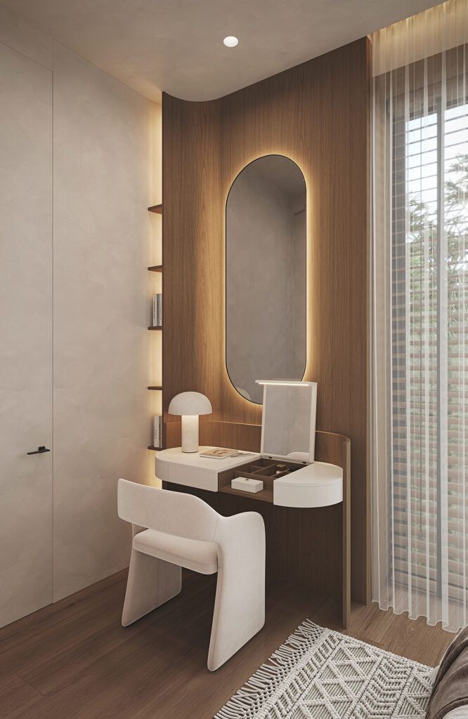 5. Уголок красоты. Чаще всего, такой уголок нужен девушкам-подросткам, которые начинают ухаживать за собой и пользоваться косметикой.но и девочка более младшего возраста будет рада туалетному столику, на котором будут лежать ее заколки и аксессуары, и большому зеркалу с подсветкой, чтобы любоваться собой в полный рост.