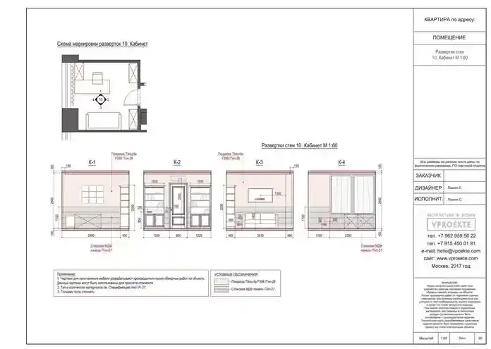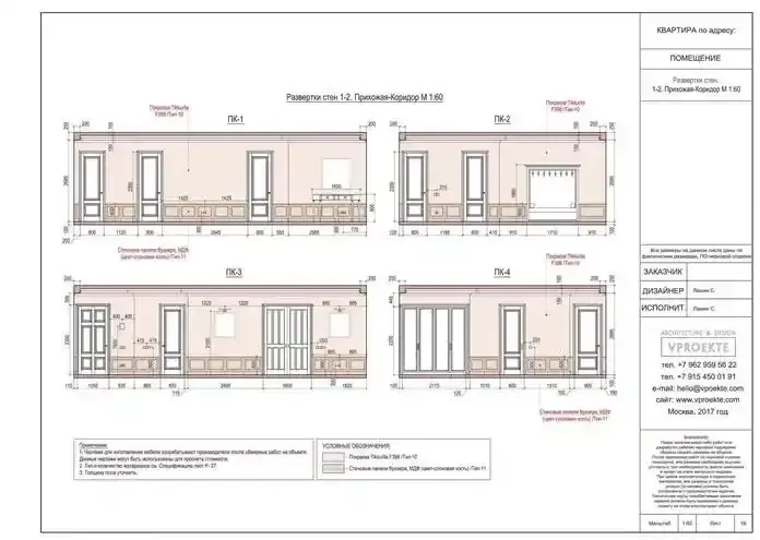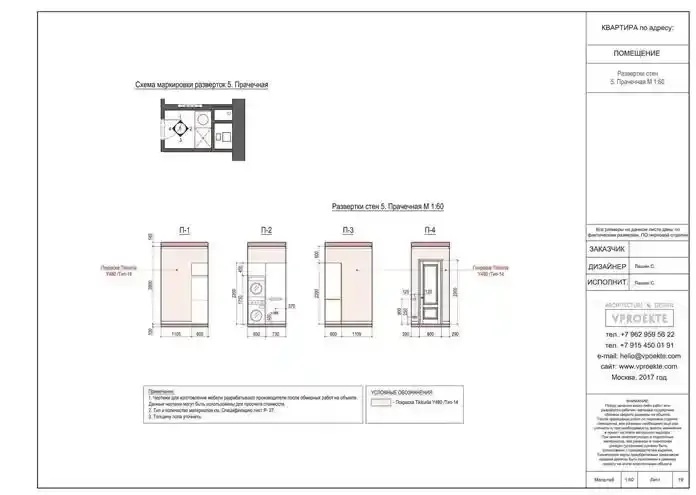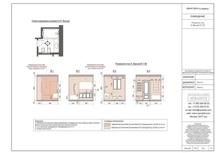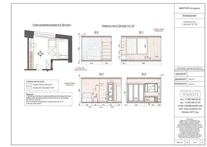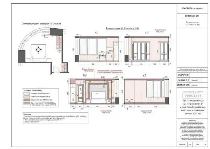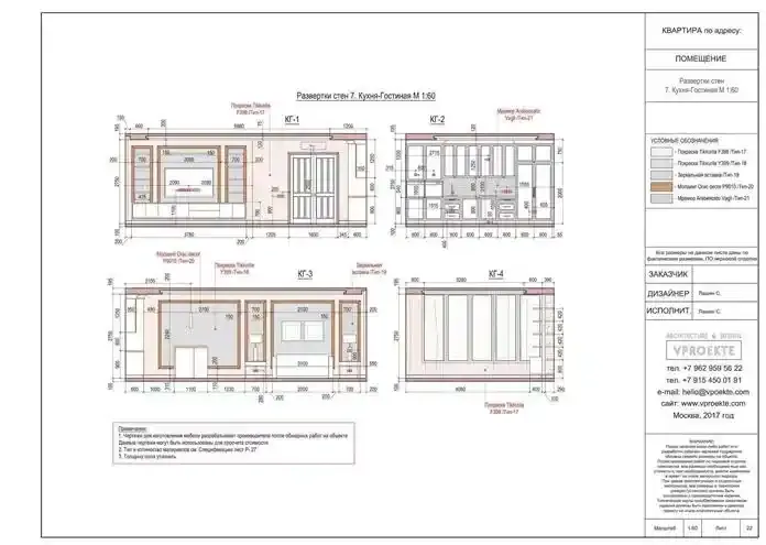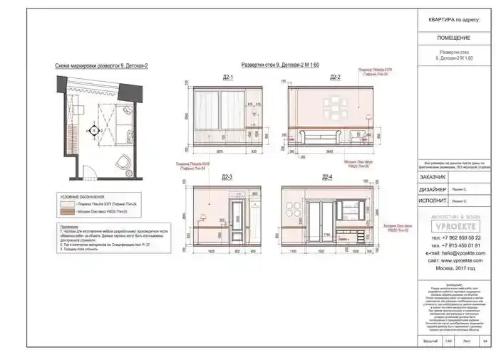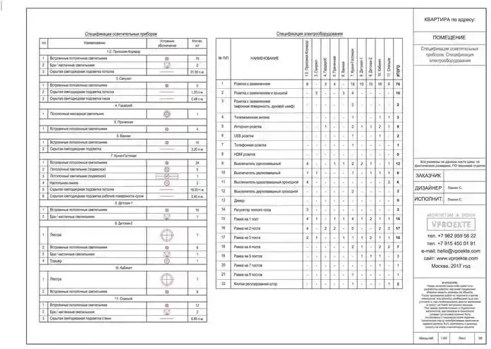 Состоит из планов, разверток и спецификаций. В них отражены все технические моменты: инженерные коммуникации, схемы монтажа электрики и сантехники, последовательность ремонта и использования отделочный материалов, виды и количество материалов и оборудования, которые понадобятся для ремонта. Это поможет грамотно провести тендер строительных бригад и избежать ошибок во время ремонта.