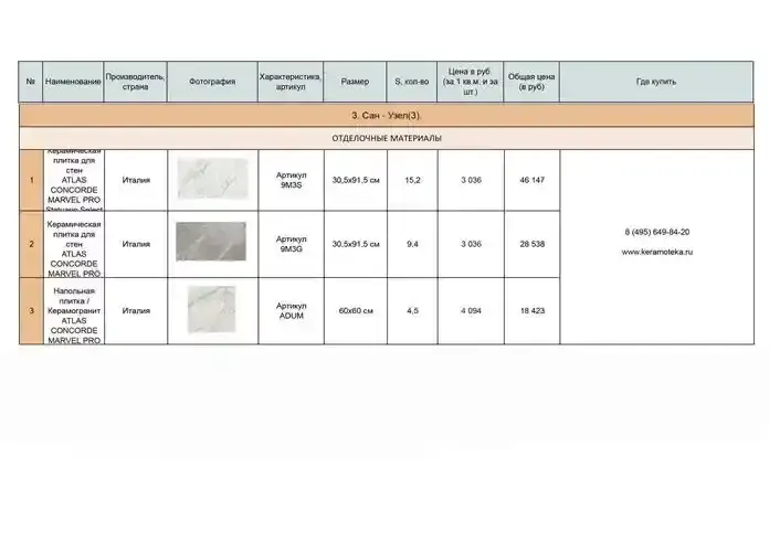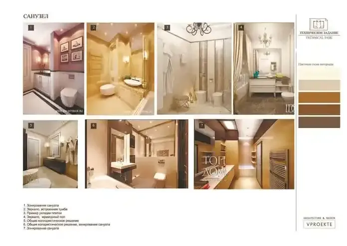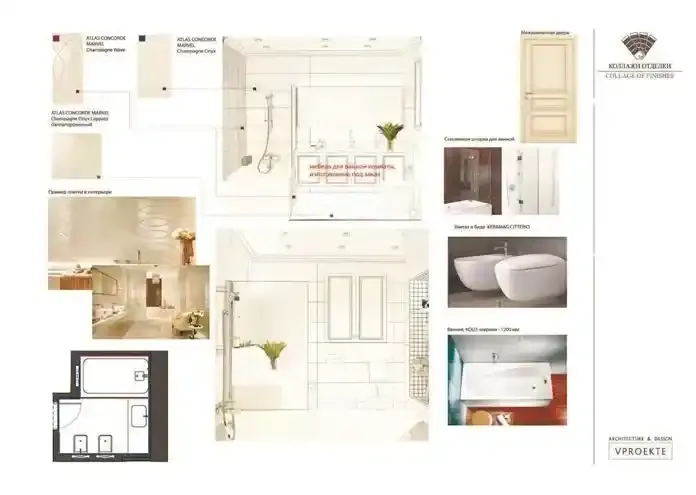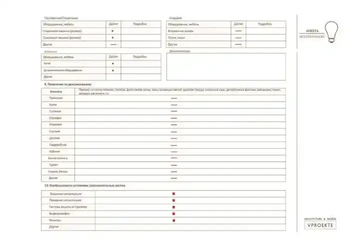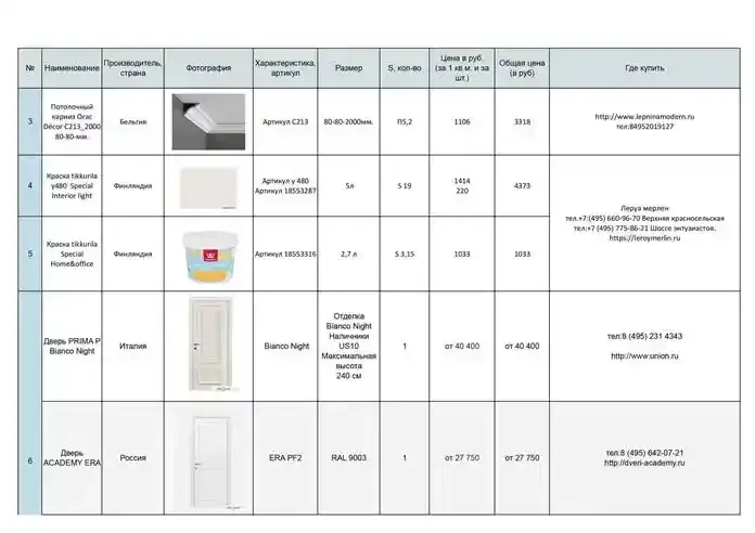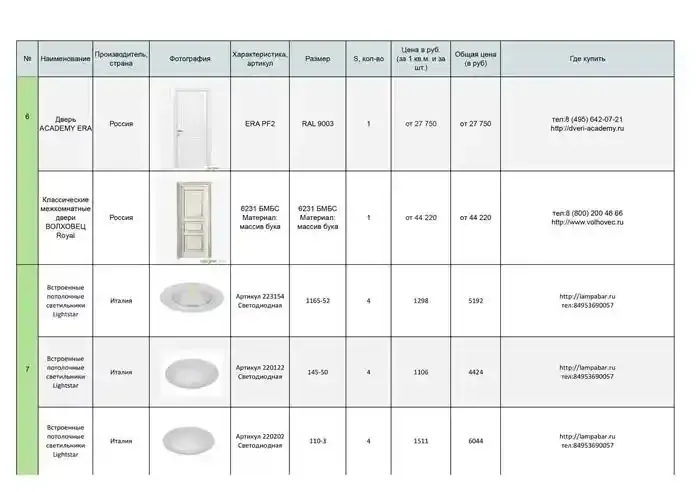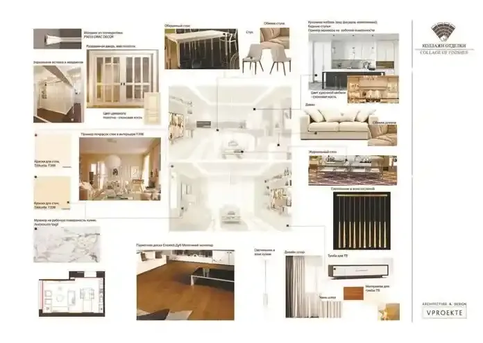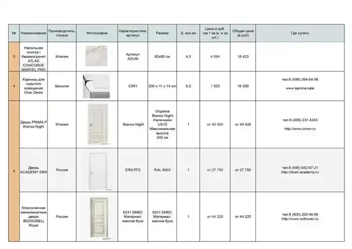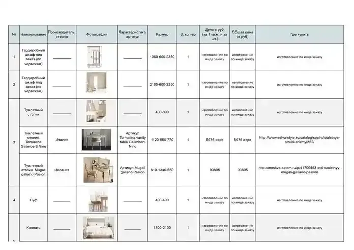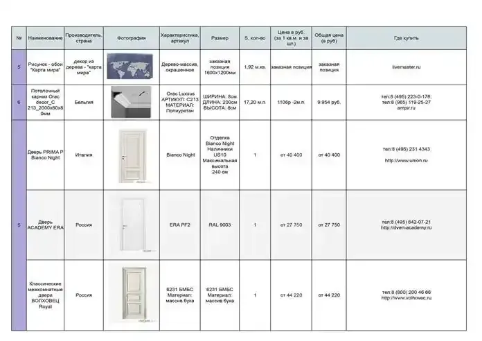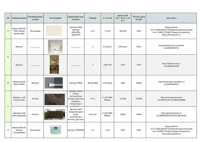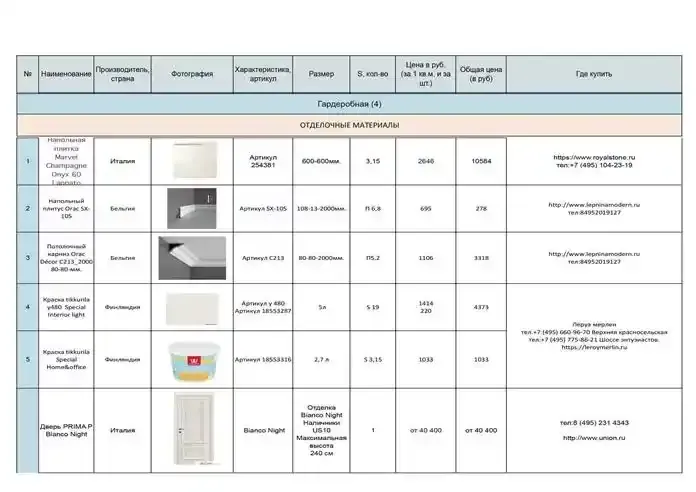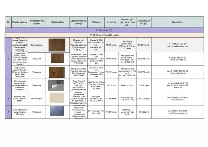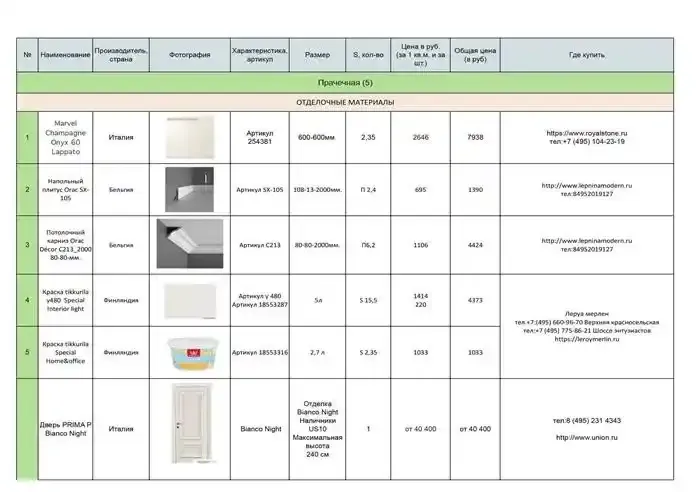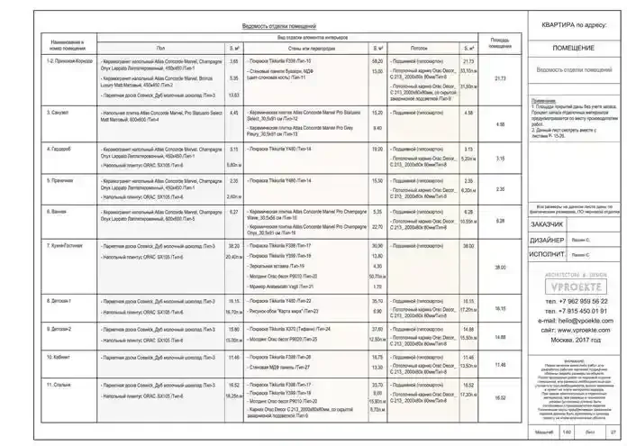 Отдельный альбом с детально прописанным списком всех отделочных материалов, технического оборудования, мебели, сантехники и предметов декора, которые были заложены в дизайн-проект. Это поможет грамотно, без лишних затрат времени на поиски, закупить все необходимое для ремонта, и избежать покупки лишних материалов.