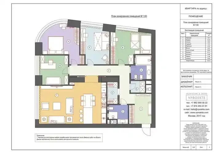 Планы будущих помещений дома или квартиры, созданные на основе пожеланий клиента. На плане цветом выделены отдельные зоны (кухня, гостиная, спальня и т.д.), схематично отмечена расстановка мебели.