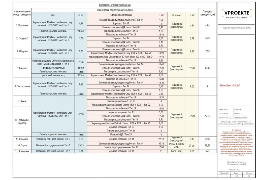 Ведомости содержат сведения по материалам и изделиям, которые понадобятся для отделки и наполнения жилища. Эти этапы работы по дизайн-проекту по сути являются предварительным расчетом расходов. В ведомостях отражается, какую мебель, шторы, приборы получится приобрести в готовом виде, а что придется изготавливать в индивидуальном порядке. Дизайнер может создать предварительные эскизы для изделий на заказ, а до совершенства их доведет технолог предприятия-подрядчика.