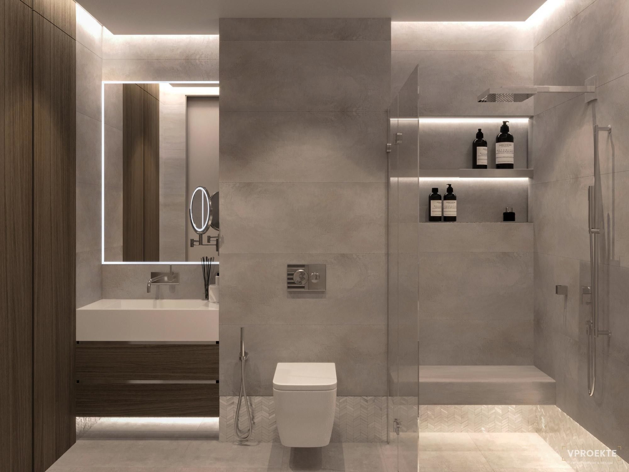 Создавая дизайн-проект ванной комнаты с душевой, специалисты Vproekte придерживаются ряда принципов, на которых строится дальнейшая работа.