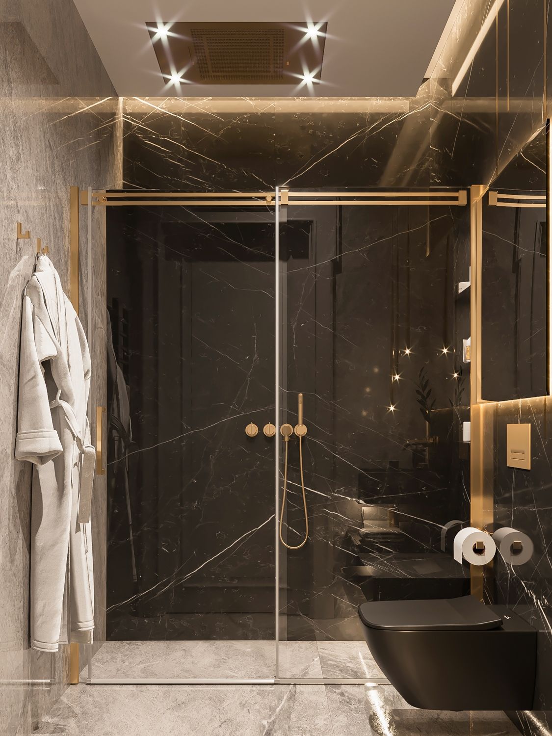 Фото душевой кабины в интерьере (справа), квартира в ЖК Hovard Palace
