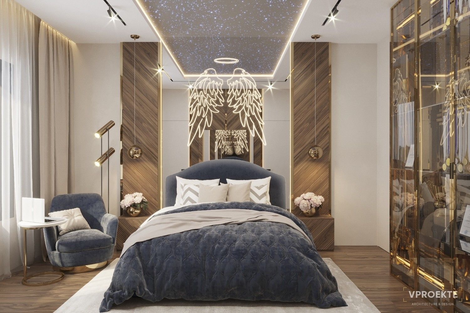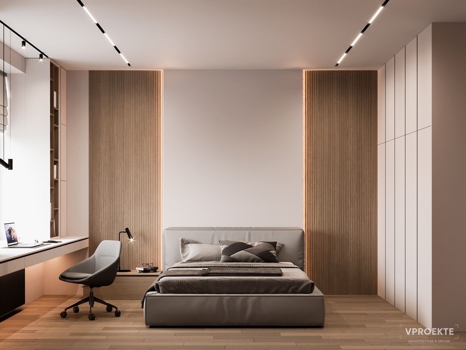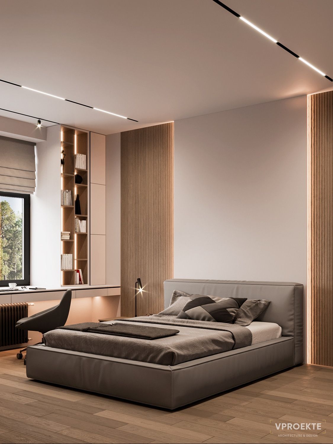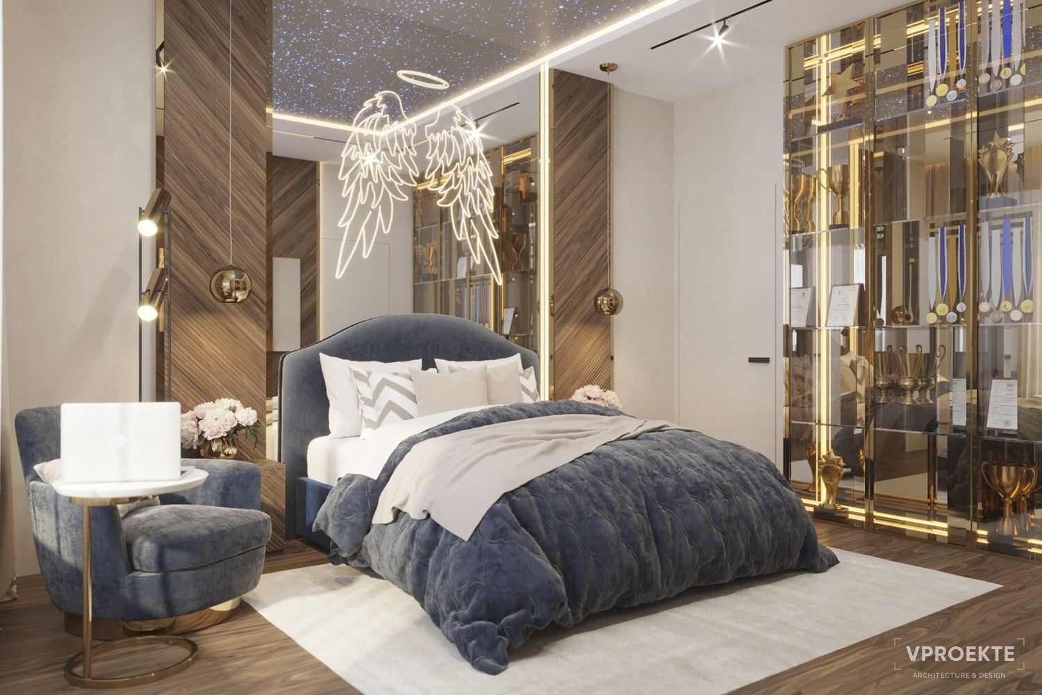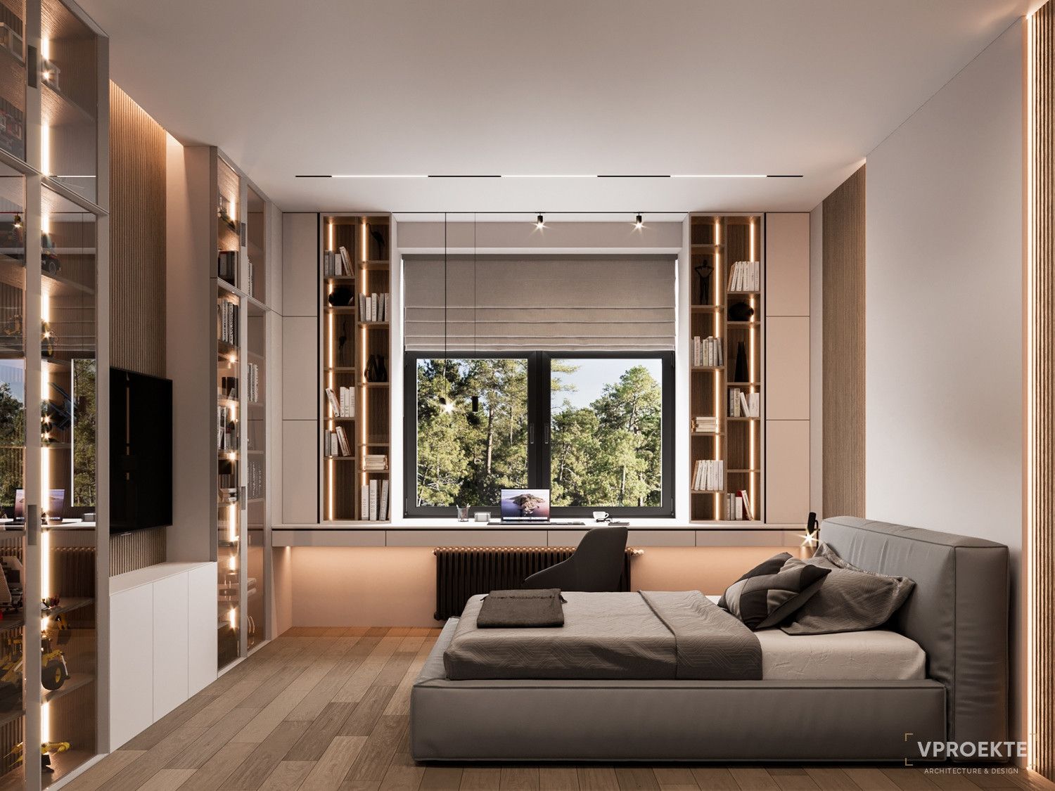- Активно растущему организму необходим безопасный и эргономичный интерьер. Качественный ортопедический матрас, подходящая по размеру стол, удобный регулируемый стул — это проявление заботы о здоровье ребенка. Проектируя интерьер, специалисты Vproekte предусматривают современные системы вентиляции и климат-контроля.