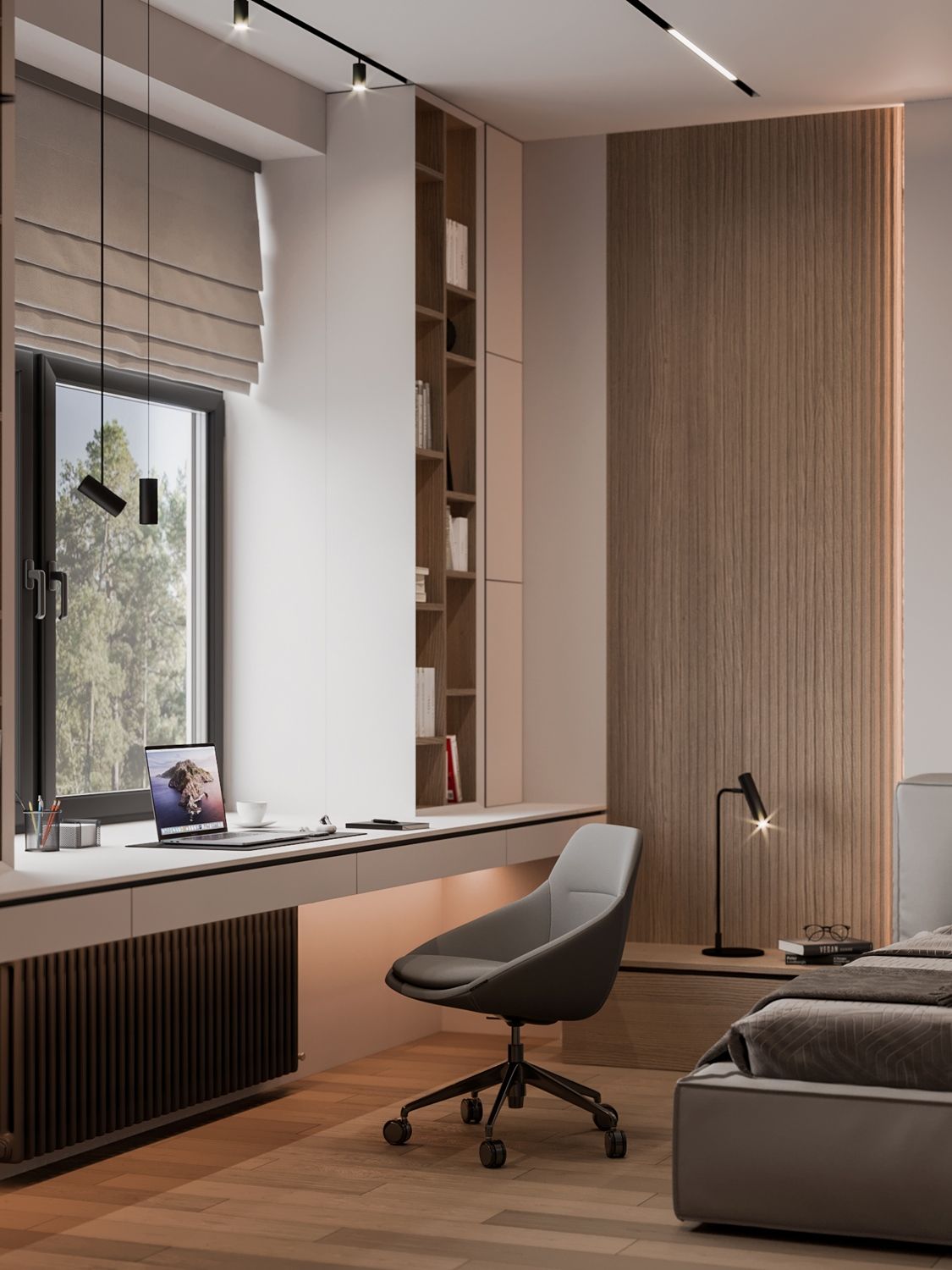 - Рабочая зона находится у окна, чтобы обеспечить достаточное естественное освещение.
