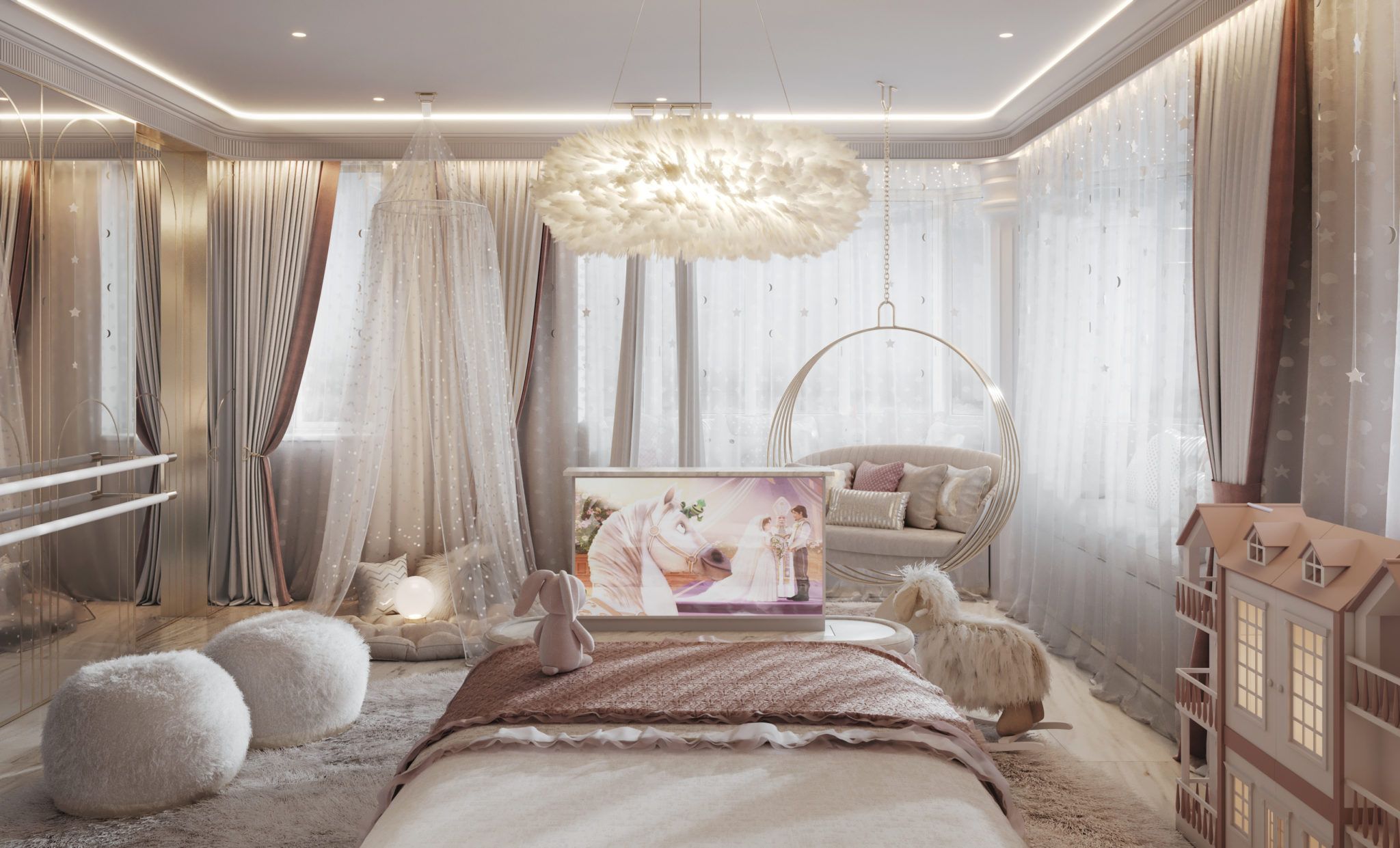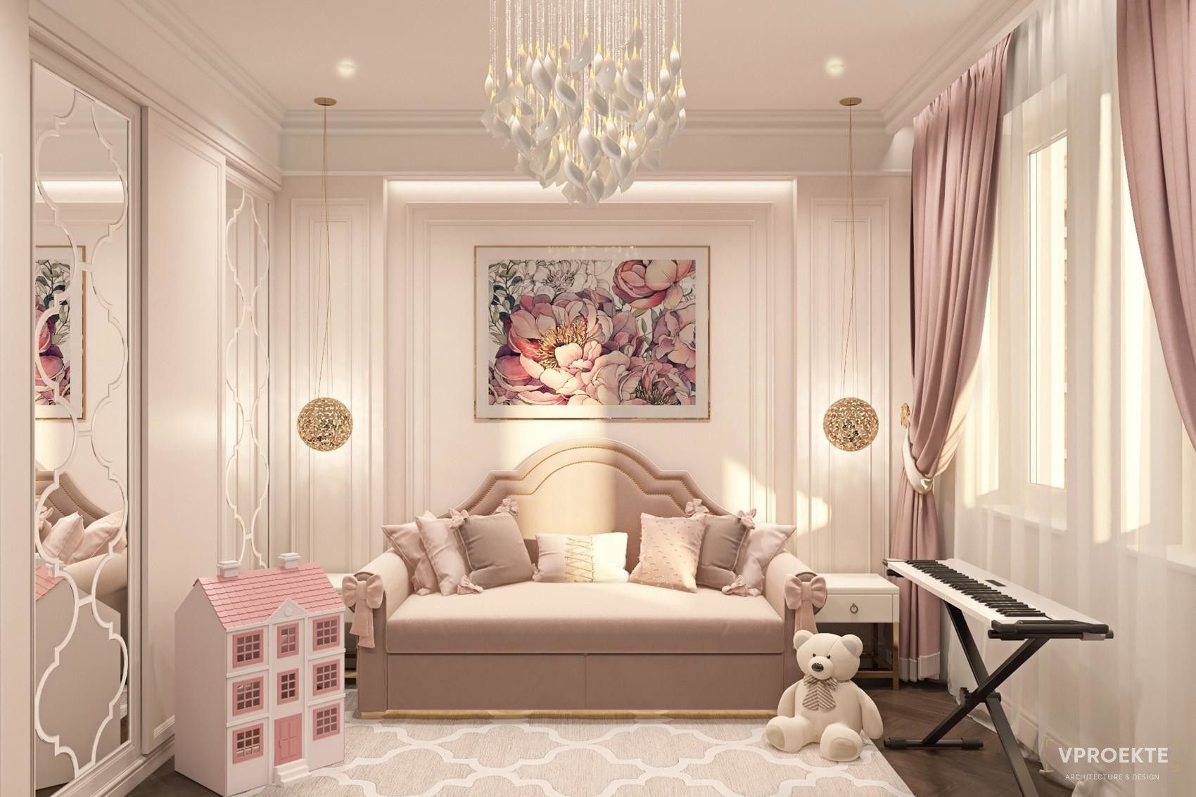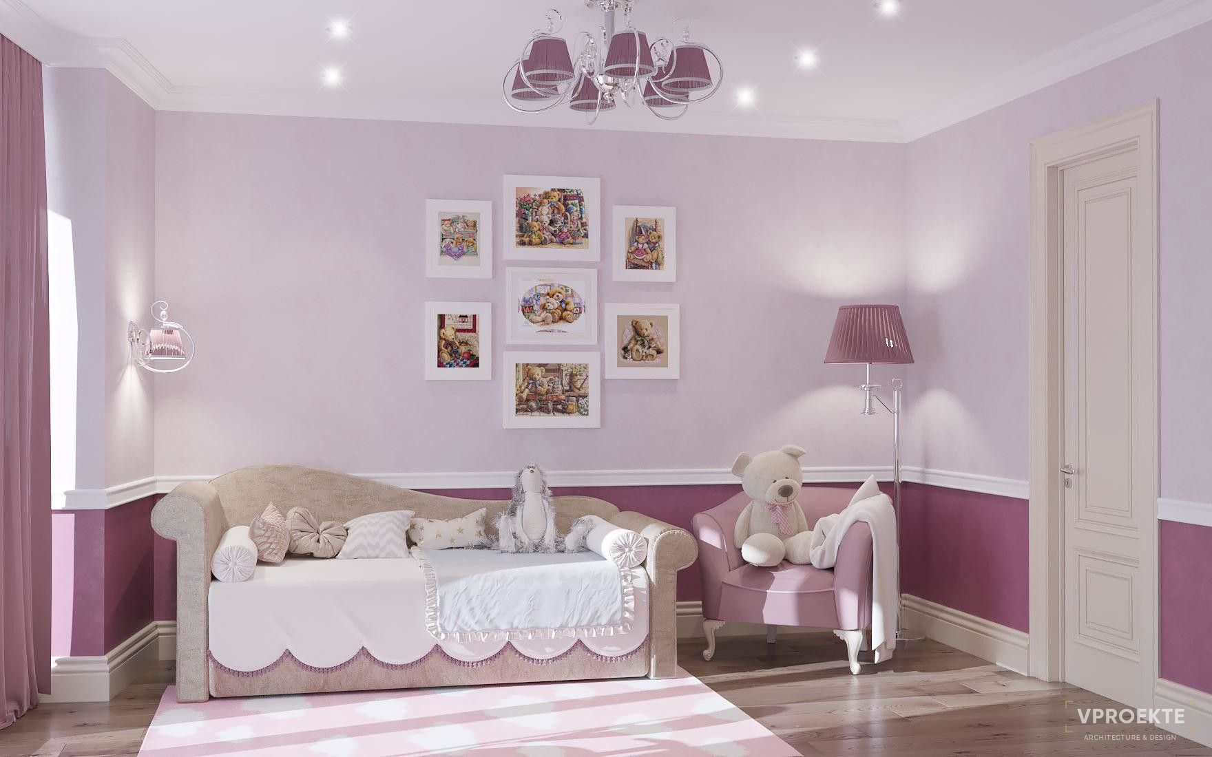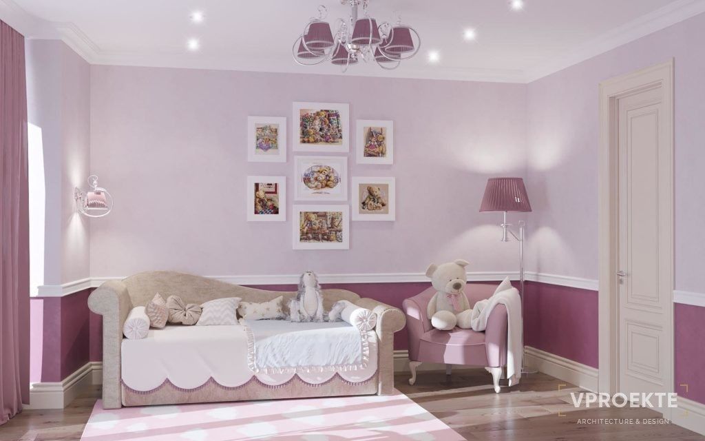 Если хозяйка детской - девочка-дошкольница, которая мечтает стать принцессой, никаких ограничений для использования розового в оформлении комнаты нет, за исключением здравого смысла. Не будем забывать о том, что детская одновременно служит спальней, так что, если мы сделаем ее слишком яркой, ребенку будет сложно уснуть.