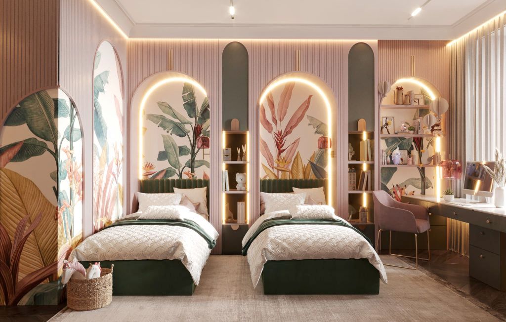 Если в комнате будут жить мальчик и девочка, лучше отдать предпочтение персиковому или лососевому оттенку.