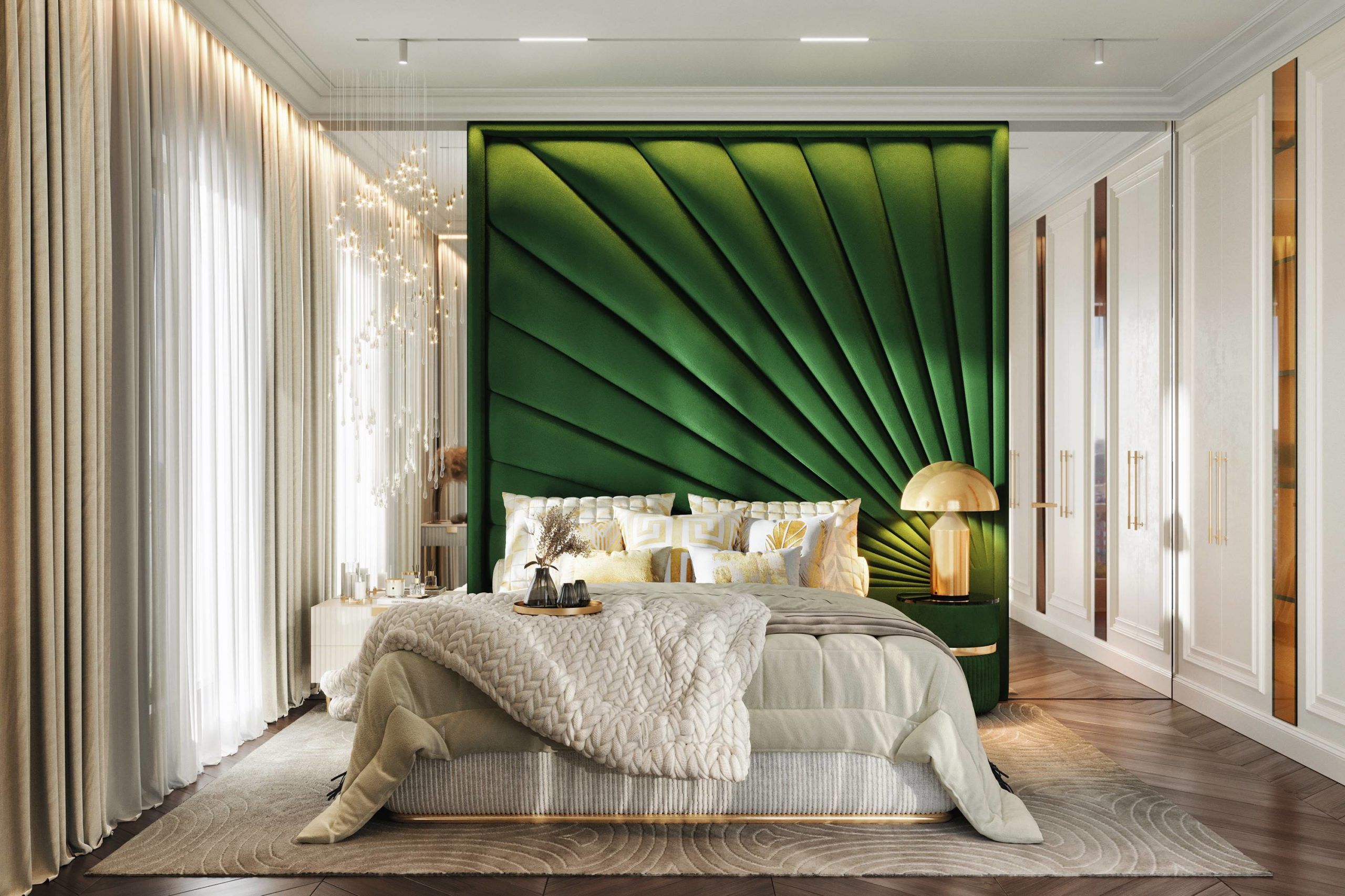 Многослойный текстиль в спальне