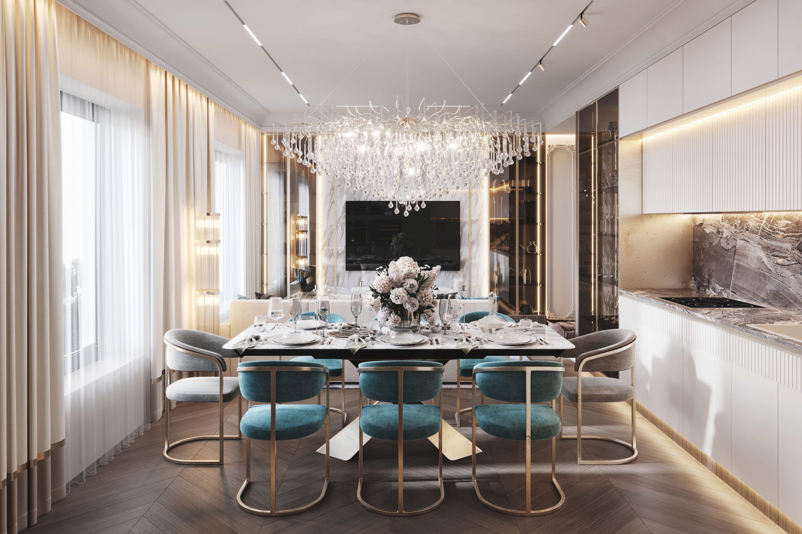 Тренды соотносятся с общемировыми, которые распространяются на все сферы человеческой жизни. Среди топовых — оздоровление. Поэтому идеальный интерьер — тот, который помогает замедлиться, ощутить пребывание в моменте и расслабиться. Монтируется улучшенная вентиляция, обеспечивающая приток свежего воздуха, очищающие фильтры и смесители для воды. Обеденная зона – уютная, способствующая сосредоточению на приеме пищи и превращающая его в ежедневный ритуал.